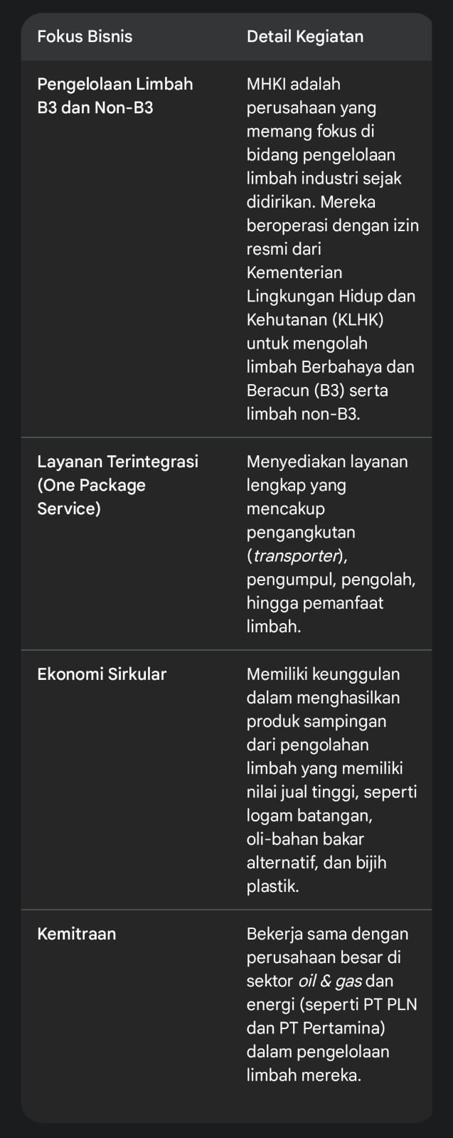 Spesialisasi Limbah: Kehadiran pemain spesialis di bidang daur ulang plastik (INOV) dan limbah industri B3 (MHKI).