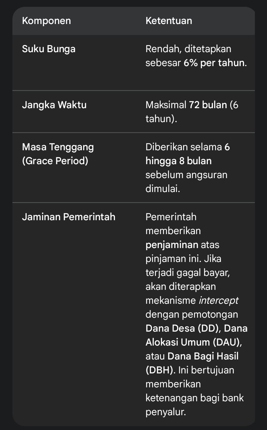 Pinjaman dari Himbara kepada Kopdes/Kel Merah Putih memiliki ketentuan khusus yang diatur melalui Peraturan Menteri Keuangan (PMK):