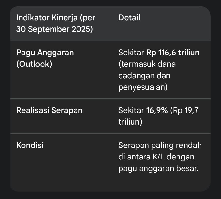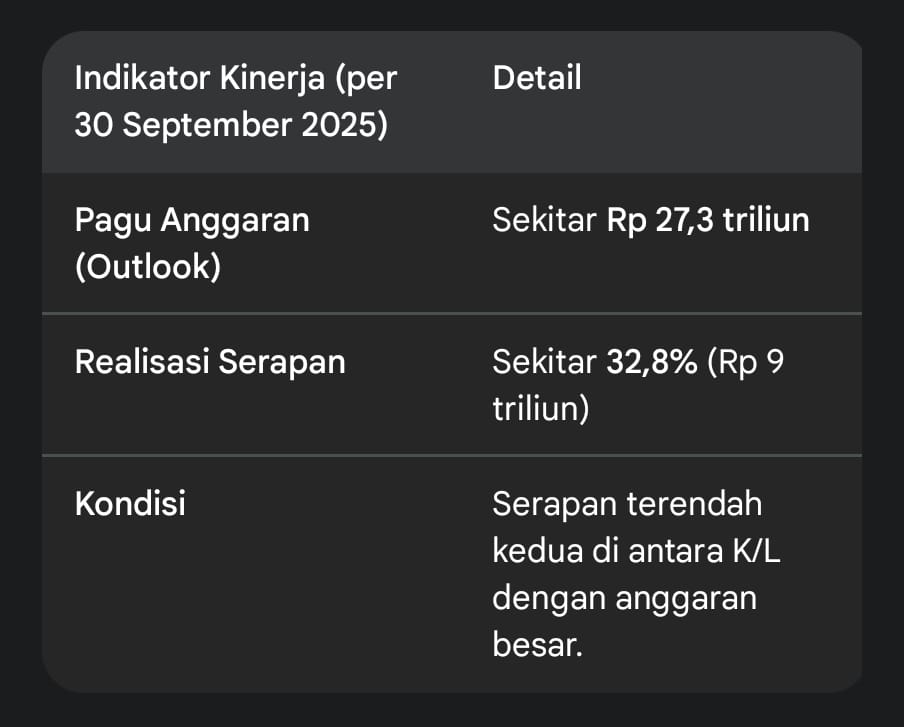Inefisiensi Anggaran: Rendahnya serapan menunjukkan ada masalah dalam perencanaan, birokrasi, atau kapasitas sumber daya manusia di K/L tersebut.