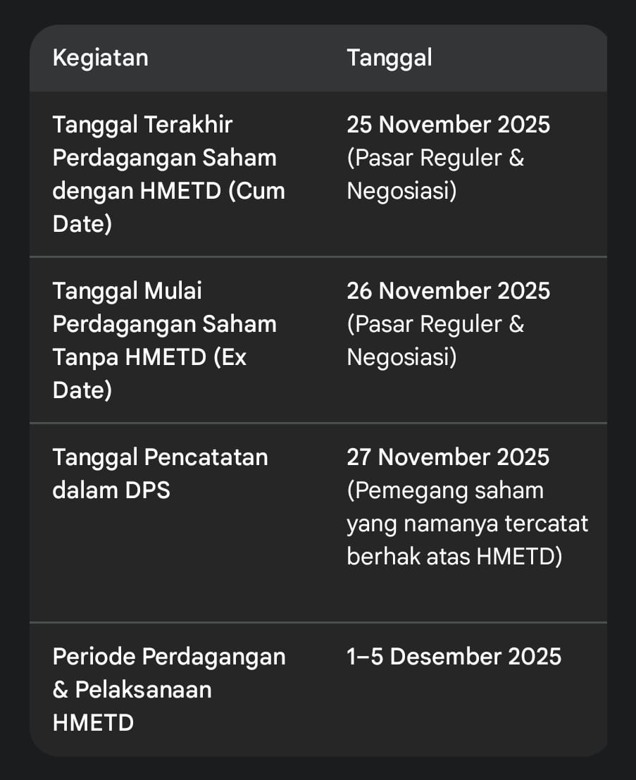 Jadwal Penting Rights Issue (Estimasi)