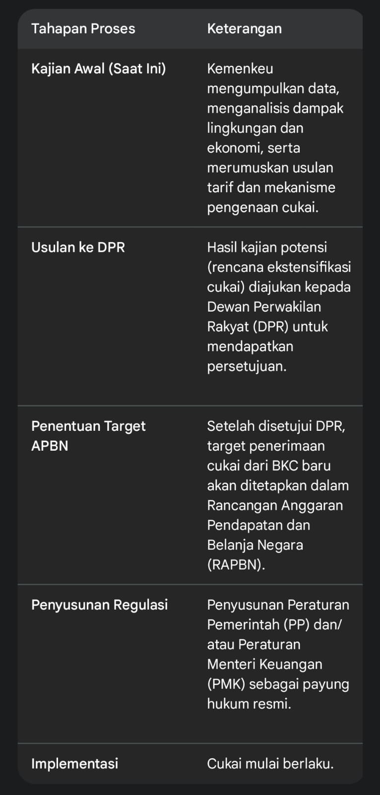 Perlu digarisbawahi bahwa kebijakan ini belum berlaku dan masih berada pada tahap awal, yaitu Kajian dan Penyusunan Potensi.