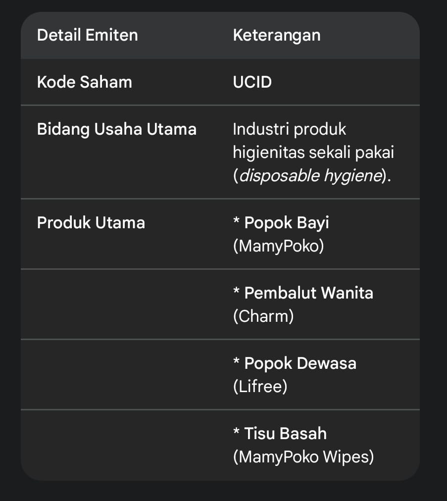 1. PT Uni-Charm Indonesia Tbk (UCID)